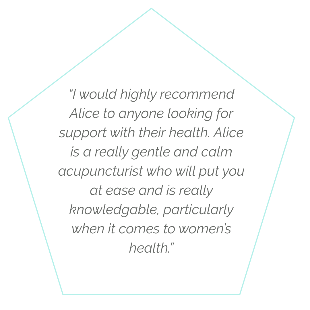 Led by acupuncturist and researcher, Alice Douglas. Alice holds a Masters of Science degree in Women’s Health from University College London. She is a Member of the British Acupuncture Council, a published author in the Journal of Chinese Medicine, and a Lecturer at the City College of Acupuncture. Alice is born and raised in South East London, and loves working in the heart of the community in Brockley.